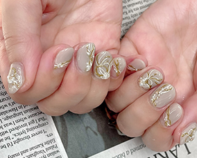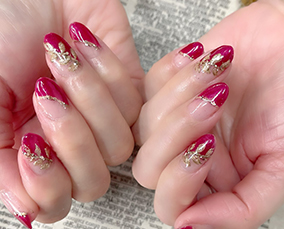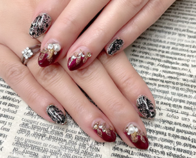 10月定額ネイル。ボルドーカラーのシノワズリアート。 |