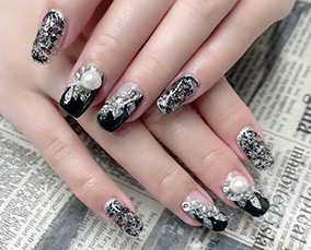 マダムのジュエリーに合わせたエメラルドネイル。 |