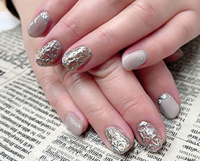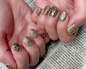 1本だけ人気のダマスク柄シンプル上品な大人ネイル。 |