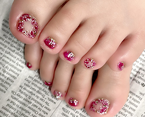 ルビーカラー&ホログラム女性らしい足元に・・・ |
