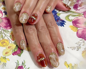 定額ネイル。ピンクブラウンなニュアンスアート。 |