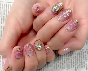可憐ピンク使用。お花やラインパールで可愛くなりました。 |