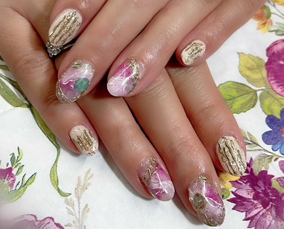 久々に押し花ネイルしたい!ベースは藤色系。 |