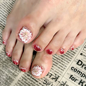 春を感じるピンクフットネイル |