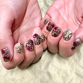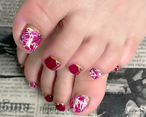 2025年の開運カラーを使用したフラワーネイルアート。 |