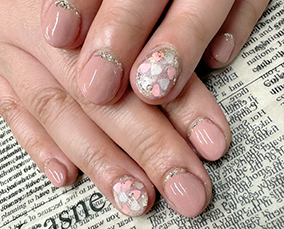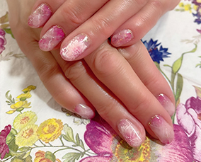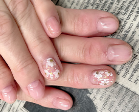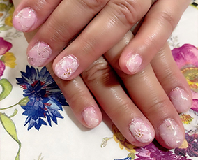 淡い色合いの桜ネイル。肌馴染みよいです。 |