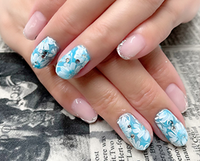 定額ネイル!ニュアンスフラワーのブルーバージョン。 |