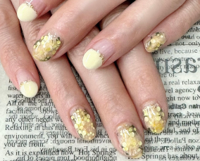 パステルイエローで明るく春らしいネイルになりました(^^♪ |