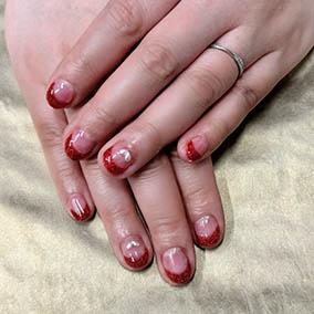秋色レッドフレンチ。パールのハートがキュート。 |