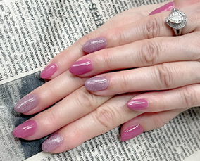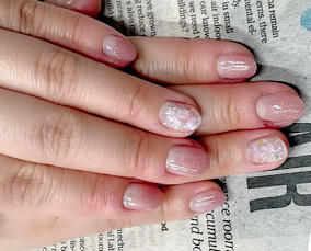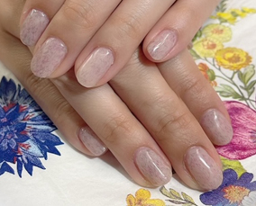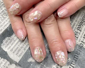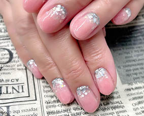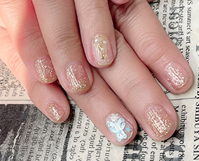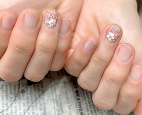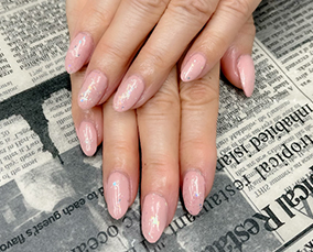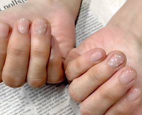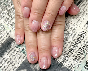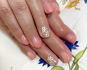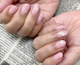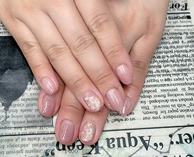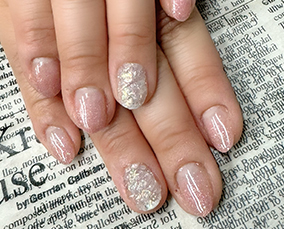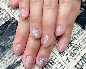 ヌーディカラーにホログラムを散らして華やかに♪ |