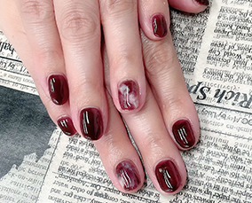 可愛げな紅小豆カラー。パールで上品にアレンジ♪ |