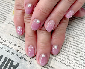 可憐ピンク使用。お花やラインパールで可愛くなりました。 |