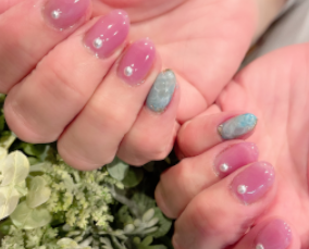 シンプルなピンクグラデに薬指は紫陽花になりました♪ |