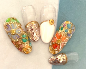 カラフルなステンドグラスネイル。 |