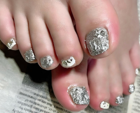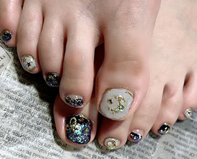 定額デザインをフットにしました。メタルアートで開運ネイル! |