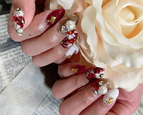 年末年始縁起良いネイルにしたい!ピンクレッドと白花アート。 |