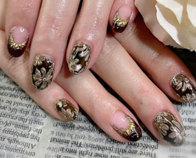 定額ネイル!メタルゴールドの草花アート! |