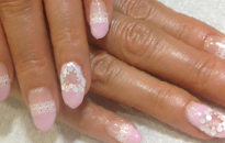 みんな大好きピンクのキラキラネイルにキュートなリボンを乗せて♪ |