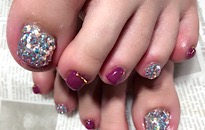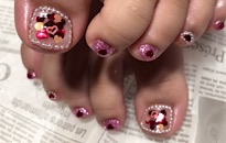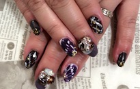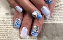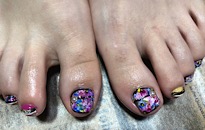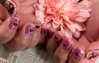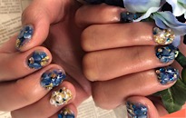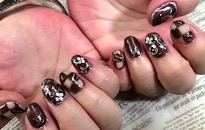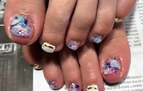 定額ネイル。クラッシュシェルにたらしこみフラワー。 |