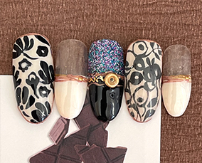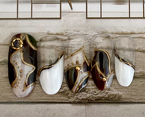 ブラウン×ホワイトの大人ネイルに遊び心を♪ |