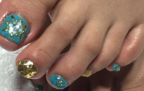 冬でも明るいカラーのカラフルフットネイル! |