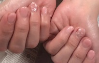 ヌーディカラーに薬指だけ ひっそりビジュー |