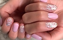 淡いピンクにミックスホロ。キュートにシンプルに♡ |
