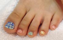 可愛らしい淡色の組み合わせにゴールドのブリオンやホログラムでアートを。 |