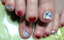 やる気Red。大人ネイルです。 | おとなしめOLさん ネイル✨ | キュートすぎ(((o(*゚▽゚*)o)))♡ | 花火ネイルをフットに。 |