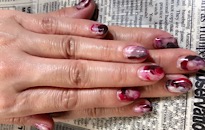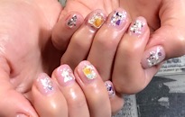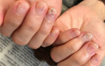 個性的なマーブルタイダイ。 | オーロラとシルバー箔をチークに。 | 薬指は シェルストーン ホワイト。 | 彼女が大好きな色。 |