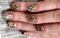 迷って迷ってこのデザインに。 | アシンメトリーネイル。 | ドームになり、ブローチ風 | 今年はシェルが来ています(^^) |