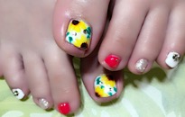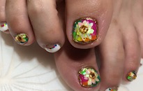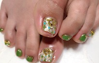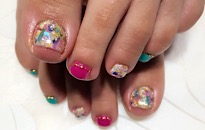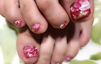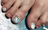 ストーンでボーダービジュー。 | 薬指は フンワリチェック。 | 薔薇でフットネイルに♡豪華 | クラッシュシェルと金箔を! |