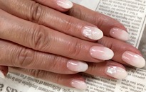 モダンアートにしました。 | 春を感じますね^_^ | フラワーネイルでキラキラに✨ | アートはクラッシュシェルホワイト。 |