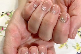 シャインフレークやナチュラルクラッシュシェルのニュアンスネイル。 |