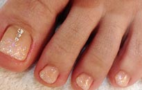 ヌーディーカラーにラメとストーンでシンプルながら上品で美しく♪ |