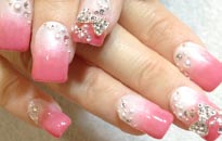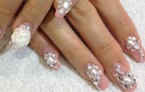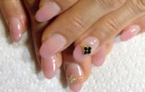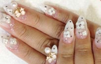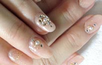 こちらもスタッフネイル☆ピンクベージュにパールを使ったストーンアート♪ |