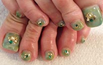 グリーン系のタイダイ柄ネイル☆センターのビジューでゴージャスに★ |