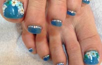 爽やかなブルーのフットジェルネイル☆小花が可愛らしいです♪ |