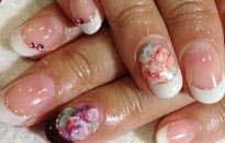 シンプルなフレンチネイルにエンボスでゴージャスなお花をのせました♪ |