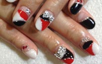 赤×白×黒でハードネイルにハートのホログラムをIN♪甘辛Mix! |