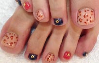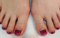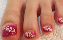 紫のグラデーションにホログラムを散らして、秋っぽいフットネイルですね♪ |