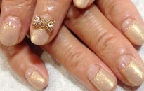 オレンジベージュで定番フレンチ。ストーンの色はゴールドでゴージャスに★ |