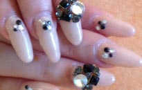 ラメ入りのパールをベースに黒のレースでセクシーにデザインしました☆★ |