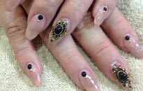 シンプルなグラデーションベースに黒のお花をつけて大人っぽく♪ |
