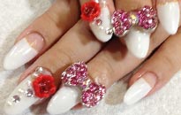 大きめのピンクの可愛いリボンパーツがゴージャスな派手ネイル!! |