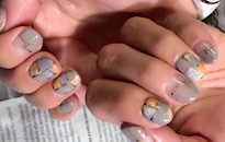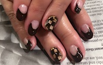 ベージュグラデ。薬指は人気のチェック柄。 |