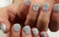 淡いグレーのフレンチ。薬指はボーダー柄に✮ |