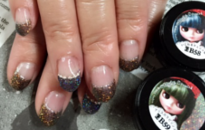 2週間フィルイン(お直し)。べっ甲柄にエンボス花をつけラメ感増量! |